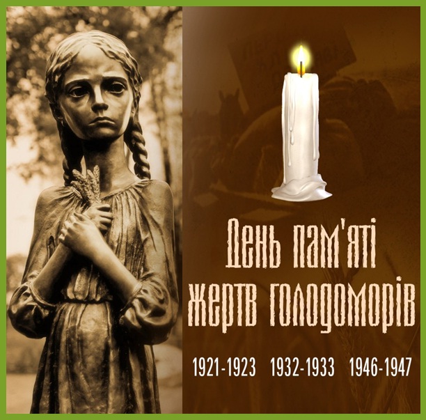 Щороку в четверту суботу листопада Україна вшановує пам’ять жертв Голодомору 1932–1933 років і масових штучних голодів 1921–1923 і 1946–1947 років.